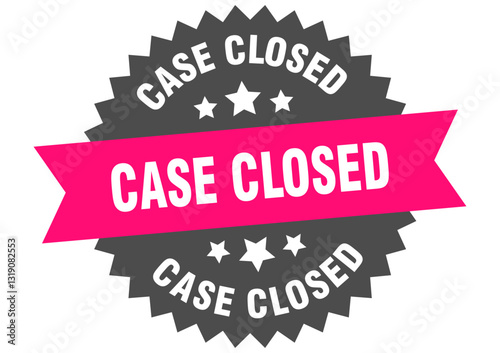 Fototapeta premium case closed. case closed round pink label isolated on transparent background