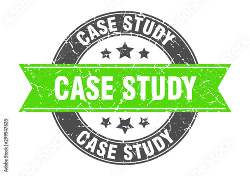 © Aquir, Obraz premium case study round stamp with green ribbon. case study
