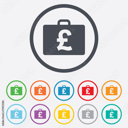 Obraz premium Case with Pounds GBP sign. Briefcase button.