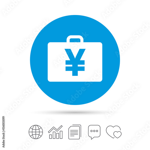 Obraz premium Case with Yen JPY sign. Briefcase button.