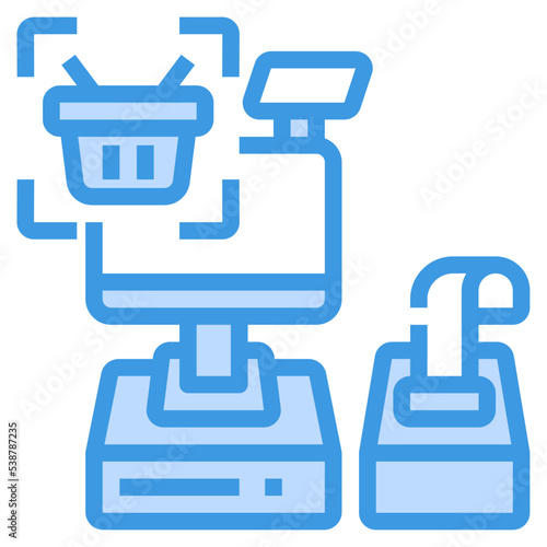 © itim2101, Fototapeta premium cashier machine blue outline icon