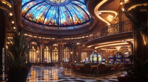 © RoAlin, Obraz premium Casino interior 3D render with intricate design and lighting