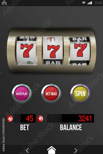 © vectorfusionart, Naklejka premium Casino slot machine app on mobile display