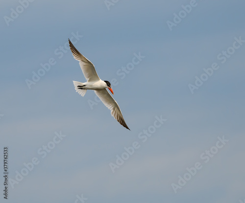 Obraz premium Caspian Tern Flying on Blue Sky