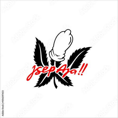 © Badrun, Obraz premium Cassava leaves covered with the words isep aja