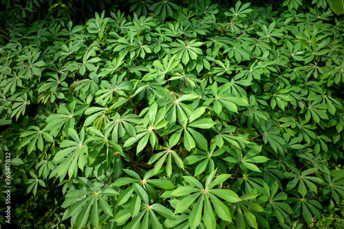 © JakaSuryanta, Obraz premium Cassava, Mandioa, Manioc, Tapioca trees (Manihot esculenta), young green leaves