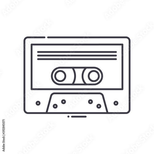 Obraz premium Cassete tape icon, linear isolated illustration, thin line vector, web design...