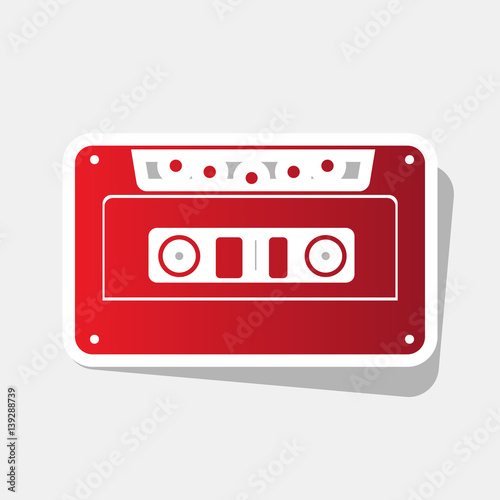© asmati, Fototapeta premium Cassette icon, audio tape sign. Vector. New year reddish icon with outside stroke and gray shadow on light gray background.