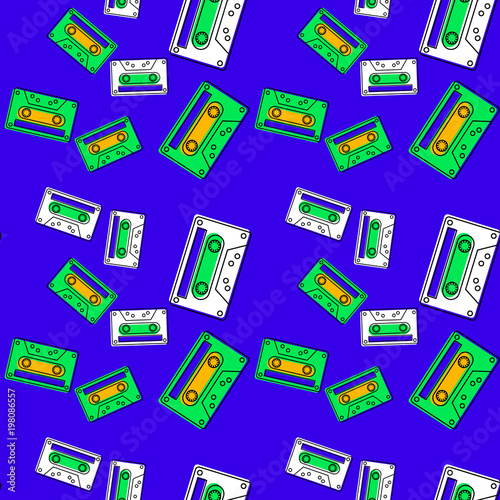 Fototapeta premium Cassette tape falling seamless pattern. Authentic design for digital and print media.