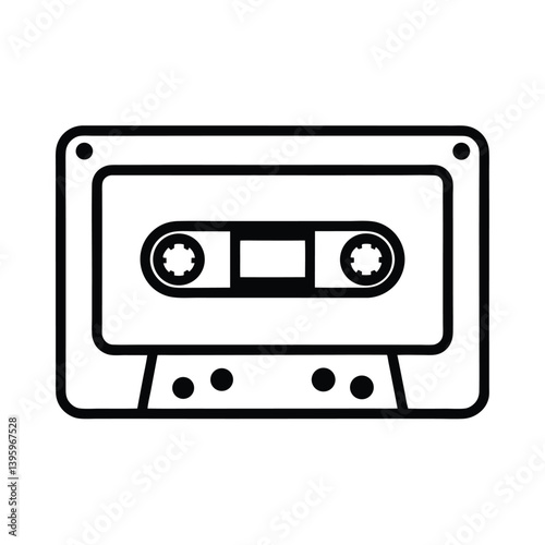 © tanbirmiah, Obraz premium Cassette Tape Outline Vector on White Background