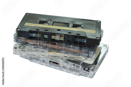 © pedphoto36pm, Obraz premium cassette tape recorder stacking on white background