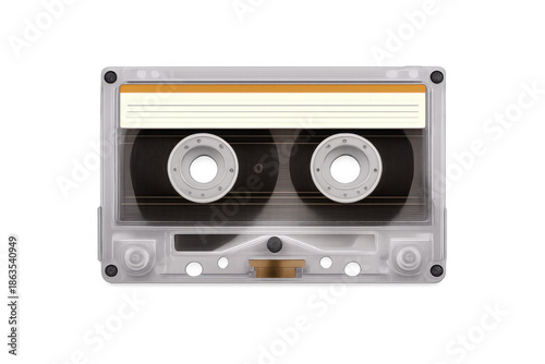 © Krtola , Fototapeta premium Cassette tape recording music playback concept, retro audio media, vintage clear plastic compact data storage