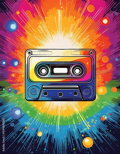 Fototapeta premium cassette tape with rainbow trail, pop art style__