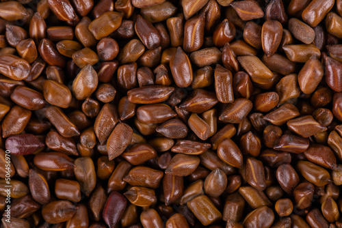 © vandycandy, Obraz premium Cassia tora beans background. Sicklepod or Senna obtusifolia. Top view.