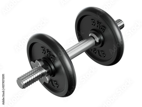 © paketesama, Naklejka premium Cast Iron Black Adjustable Dumbbell, weightlifting gym equipment, side view. Png clipart isolated on transparent background