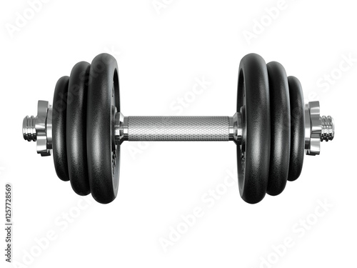 Naklejka premium Cast Iron Black Adjustable Dumbbell, weightlifting gym equipment, side view....