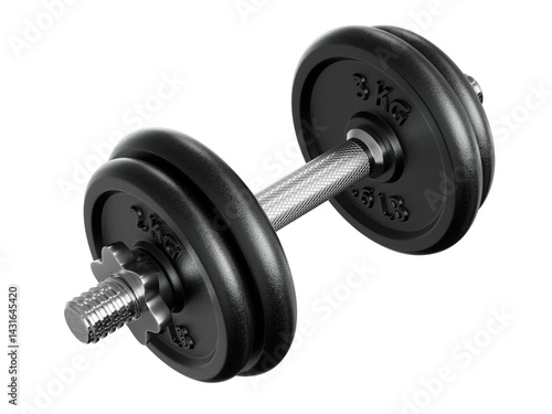 © paketesama, Naklejka premium Cast Iron Black Adjustable Dumbbell, weightlifting gym equipment, side view. Png clipart isolated on transparent background
