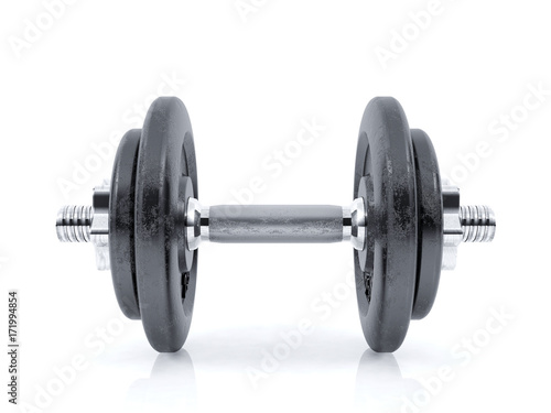 Fototapeta premium Cast iron dumbbell on white background, 3D rendering