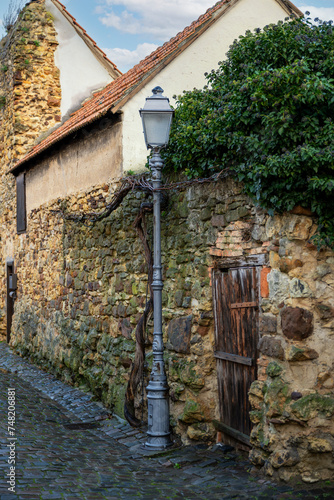 © Stephan Röger, Fototapeta premium cast-iron, old street lamp on the old city wall