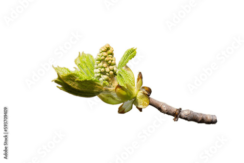 © wasnoch, Obraz premium castanea tree branch with young leaves and flowers isolated on a white background