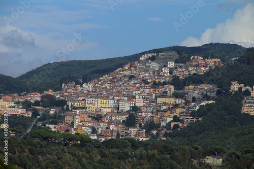© Antonio Nardelli, Naklejka premium Castel Gandolfo, Italia - 24 settembre 2020: Panorama di Rocca di Papa vista da Castel Gandolfo
