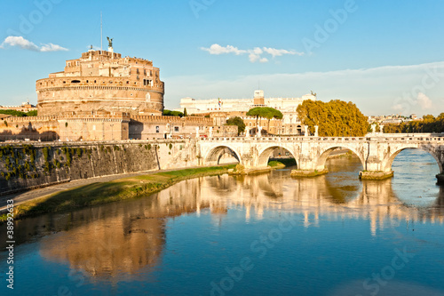 Obraz premium Castel Sant'angelo and Bernini's statue on the bridge, Rome, Ita