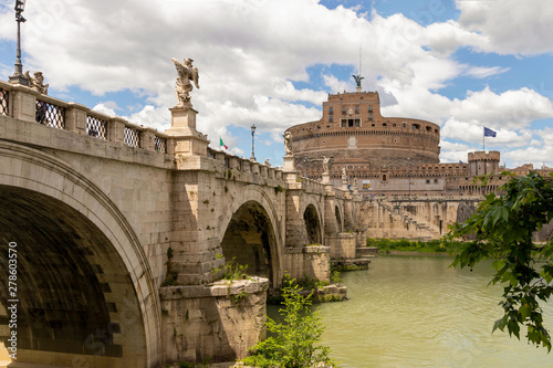 Fototapeta premium Castel Sant'Angelo, Ponte Sant'Angelo, bridge, Tiber river. Rome, Italy.