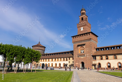 Naklejka premium Castello Sforzesco – ceglany zamek w Mediolanie