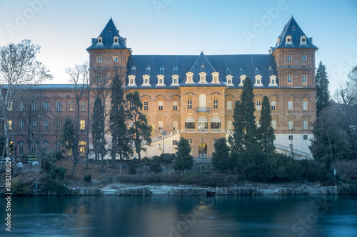 Fototapeta premium Castle at the park of valentino in turin. Panorama of Turin