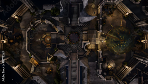 Fototapeta premium Castle Battle Map for RPG, Map for Dungeons and Dragons, DnD Map, Tabletop Role-Playing Games, Adventure Game Background, Top-Down View