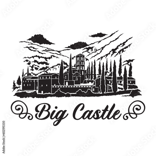 Naklejka premium Castle house vector illustration, perfect for t shirt design and wedding venue logo design