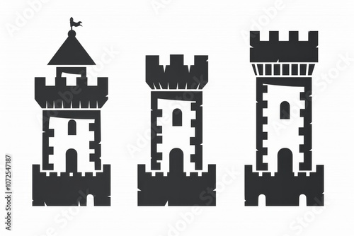 Obraz premium Castle icon, fairy tale forts, old towers, medieval castles, kingdom symbol,...