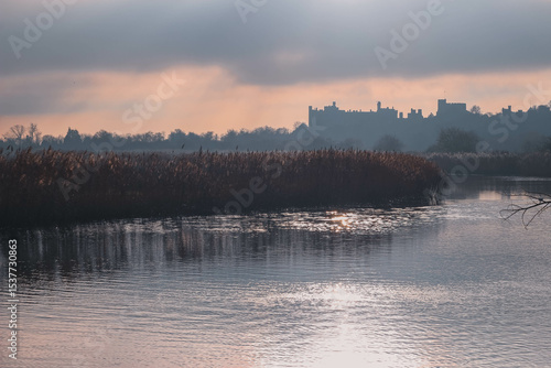 © Will, Fototapeta premium Castle in the background down a foggy English river