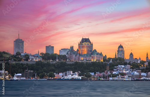 Obraz premium Castle in the city skyline at sunset