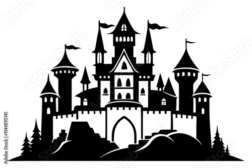 © Pinak, Fototapeta premium castle line art silhouette vector illustration