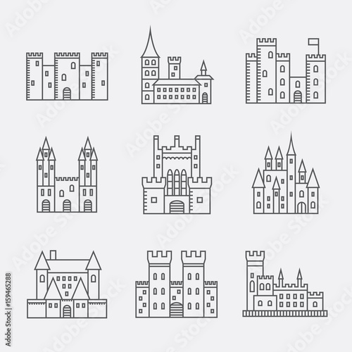 Obraz premium Castle line icons set. Vector illustration.