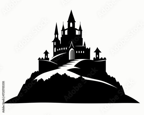 Obraz premium Castle on hill silhouette vector