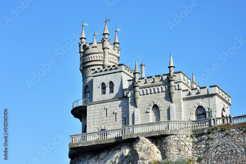 © kalichka, Fototapeta premium Castle Swallow's Nest on a rock at Black Sea, Crimea, Russia. It is a symbol and tourist attraction of Crimea