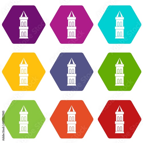 © ylivdesign, Fototapeta premium Castle tower icon set color hexahedron