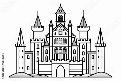 © Chayon Sarker, Obraz premium castle vector outline on white background
