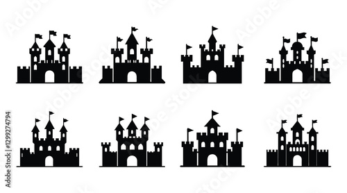 Obraz premium Castle Vector Silhouettes: Medieval & Fantasy Icon Graphics
