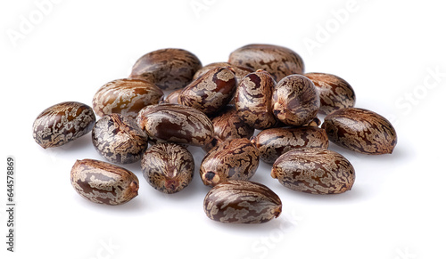 © Dionisvera, Obraz premium Castor seeds on white background