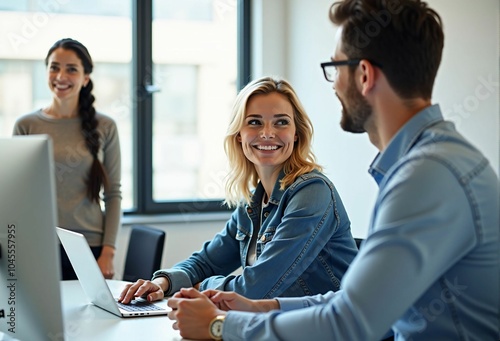 Fototapeta premium Casual Business Meeting: Creative Discussions and Project Planning in a...