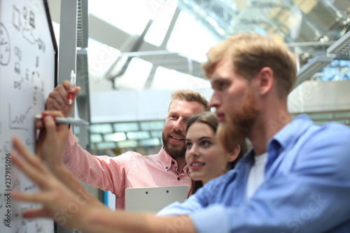 Obraz premium Casual business people working with whiteboard in office.