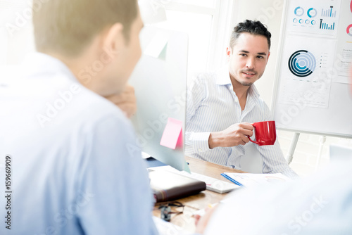 Obraz premium Casual businessman drinking coffee in the office