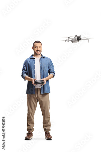 © Ljupco Smokovski, Fototapeta premium Casual man flying a drone