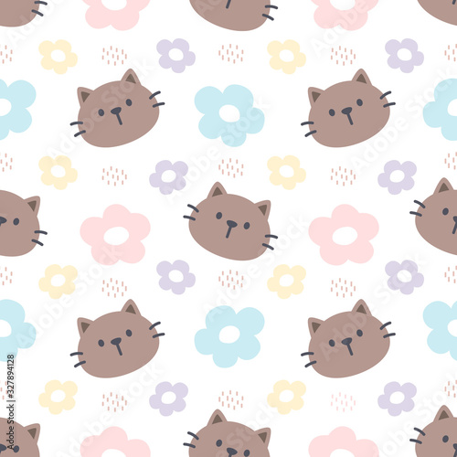 Obraz premium Cat and flowers seamless pattern background