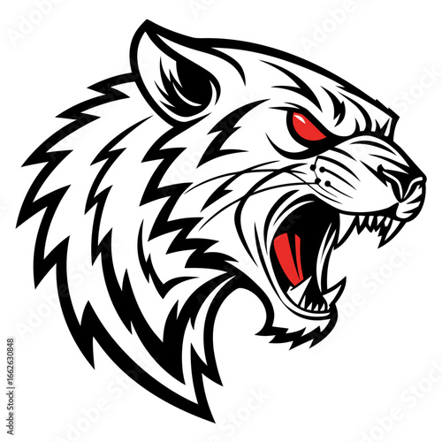 © MdAbuAl, Obraz premium Cat and tiger head vector illustration in tribal tattoo style