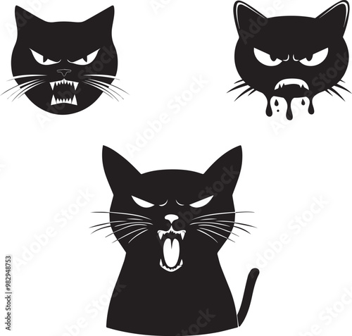 Obraz premium Cat angry crying black silhouette vector