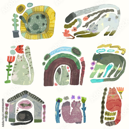 © Jorm Sangsorn, Naklejka premium Cat, animal watercolor vector illustration.